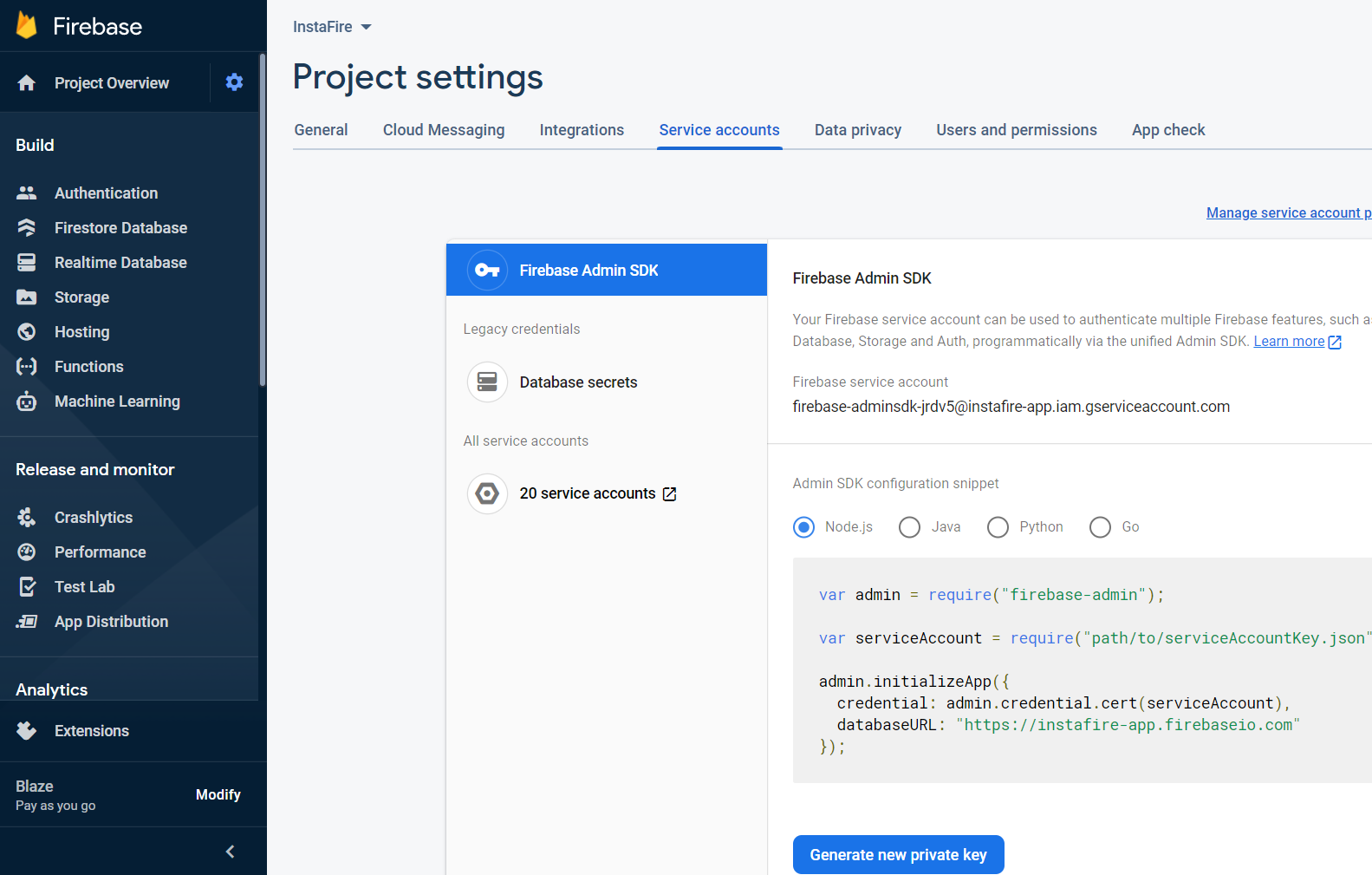 Firebase Admin requires us to authenticate the server. Download your service account from the Firebase console and save it as service-account.json in the root of the project. âš Keep this file secret!